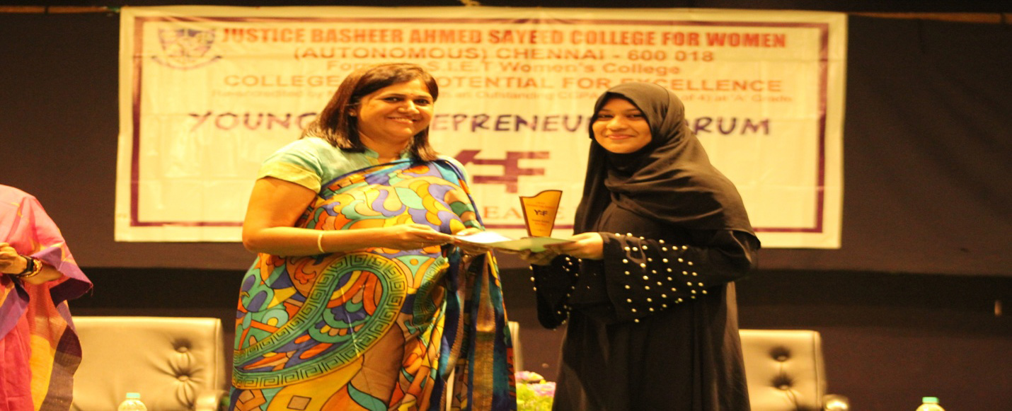 The Inauguration of Young Entrepreneur Forum was held on 1st August 2019 at 11.30 am in the College Auditorium. The Function began with invocation to Almighty by Ms.Sama and Ms.Arshia Akbar President YEF delivered the welcome Address. The Chief Guest Mrs. Sowmya Kumar Arjun , is an Alumna of our college and she is Entrepreneur of CHAYA, Tanjore Art & More. She also a partner in manufacturing Kozzmo Goli soda.