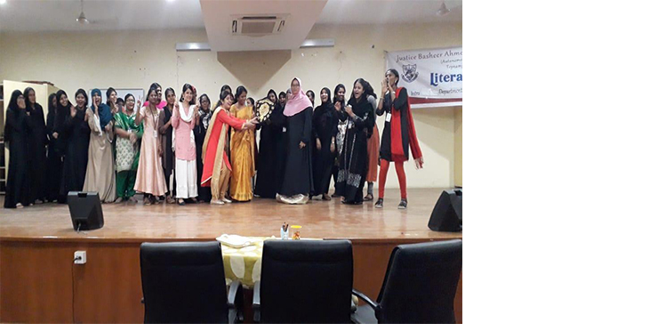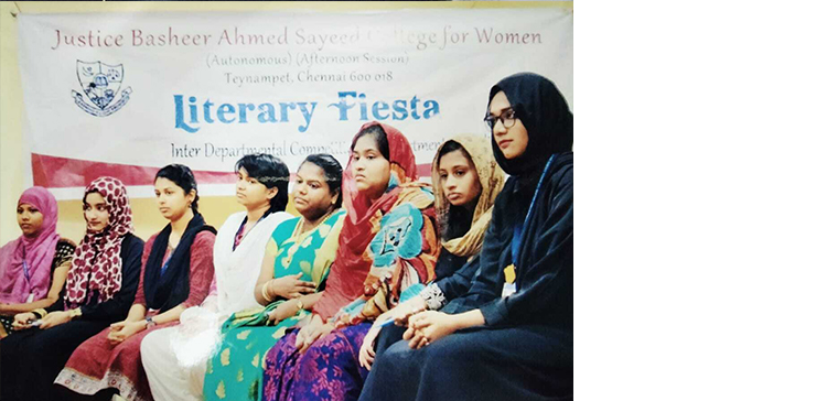 The Afternoon Session of Justice Basheer Ahmed Sayeed College for Women was established in the year 1990. The B.A English Literature was started in 1995. Like the central nervous system of the human body, the English Department reaches out to every other department in the college, awakening students to the beauty of English language and honing their creative and communicative skills, in order that the students may, in turn, take their place in the society and contribute to the betterment of the country. The English Department has always nourished and cultivated the all-round development of the students’ personality through various co-curricular and extracurricular activities. Every year a Literary Fiesta is organized by the department to enable students to showcase their talents. Various competitions like monologues, soliloquies, poetry recitation, quiz, crossword, spin-a-yarn, book review, creative writing, limericks, news anchoring etc. are conducted and prizes are awarded to the winners. The department also conducts many workshops to enhance the inter-personal skills of the students. Resource persons from various fields are invited to address the students.